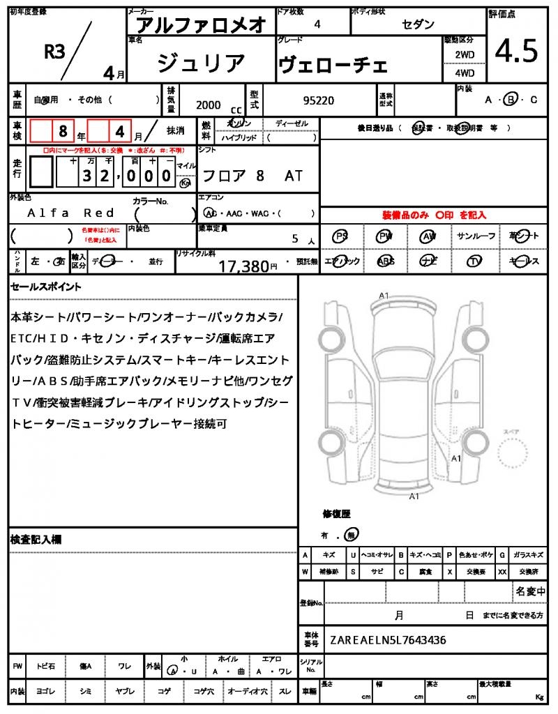 | VIN/Serial No. | ZAREAELN5L7643436 |
