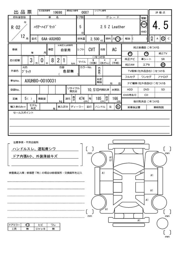 | VIN/Serial No. | AXUH80-0010031 |