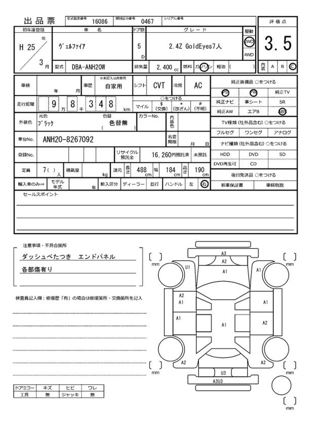 | VIN/Serial No. | ANH20-8267092 |