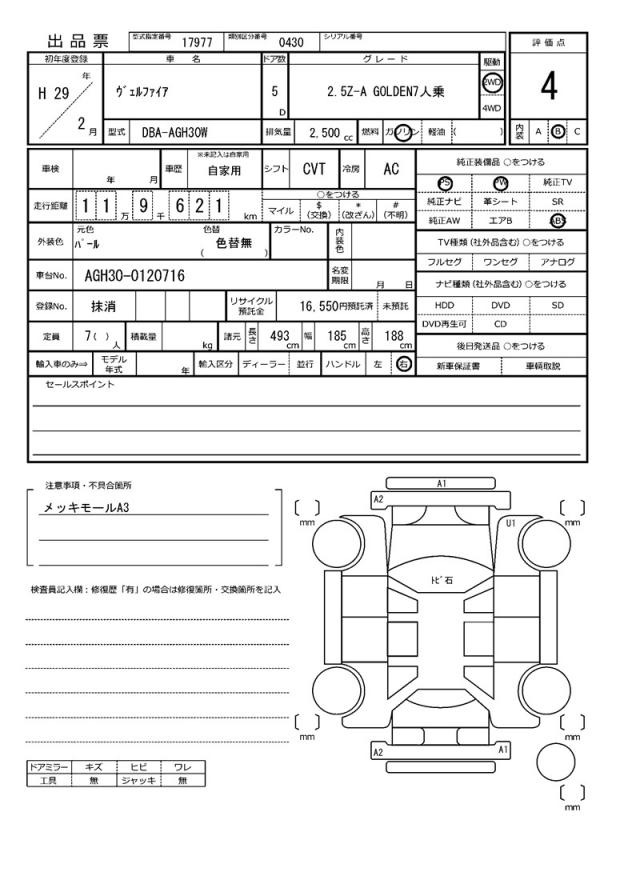 | VIN/Serial No. | AGH30-0120716 |