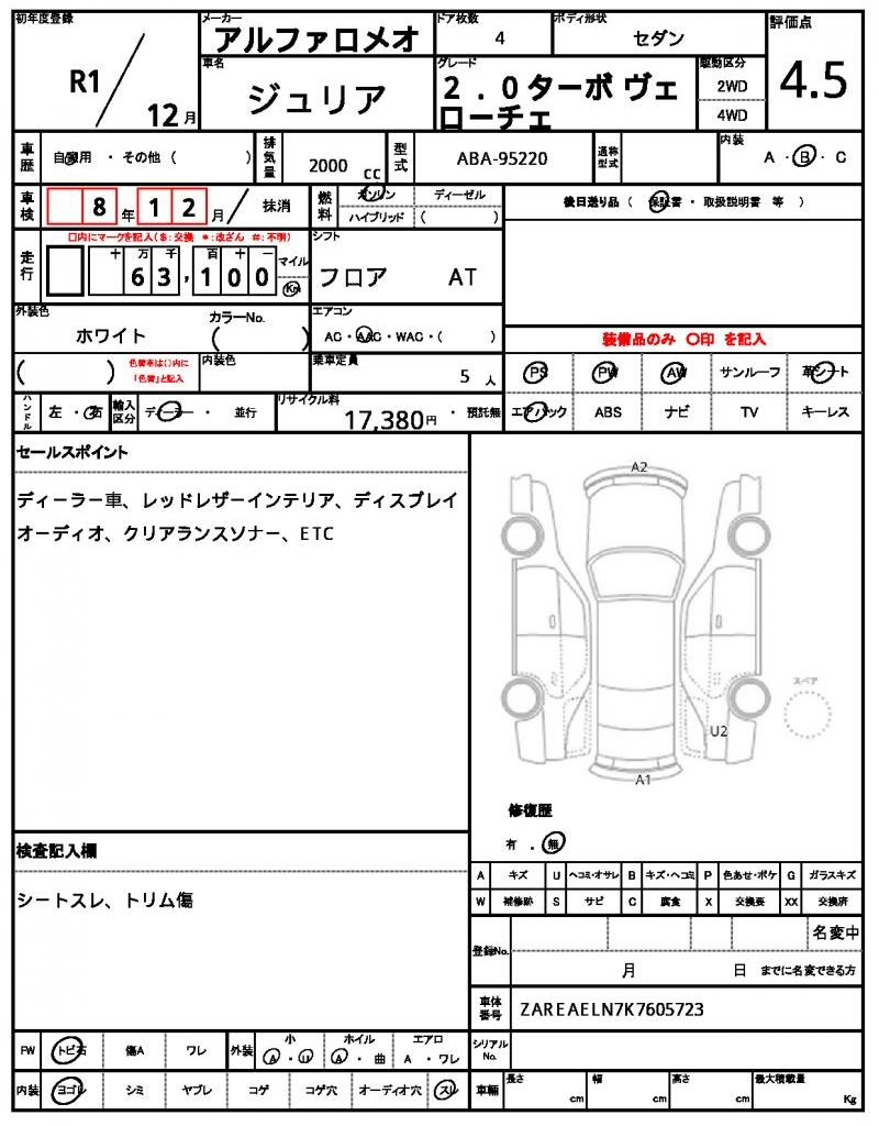 | VIN/Serial No. | ZAREAELN7K7605723 |