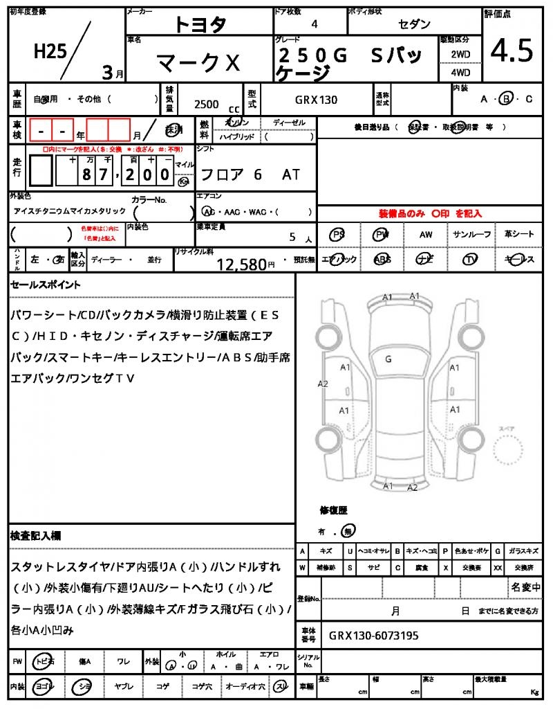 | VIN/Serial No. | GRX130-6073195 |