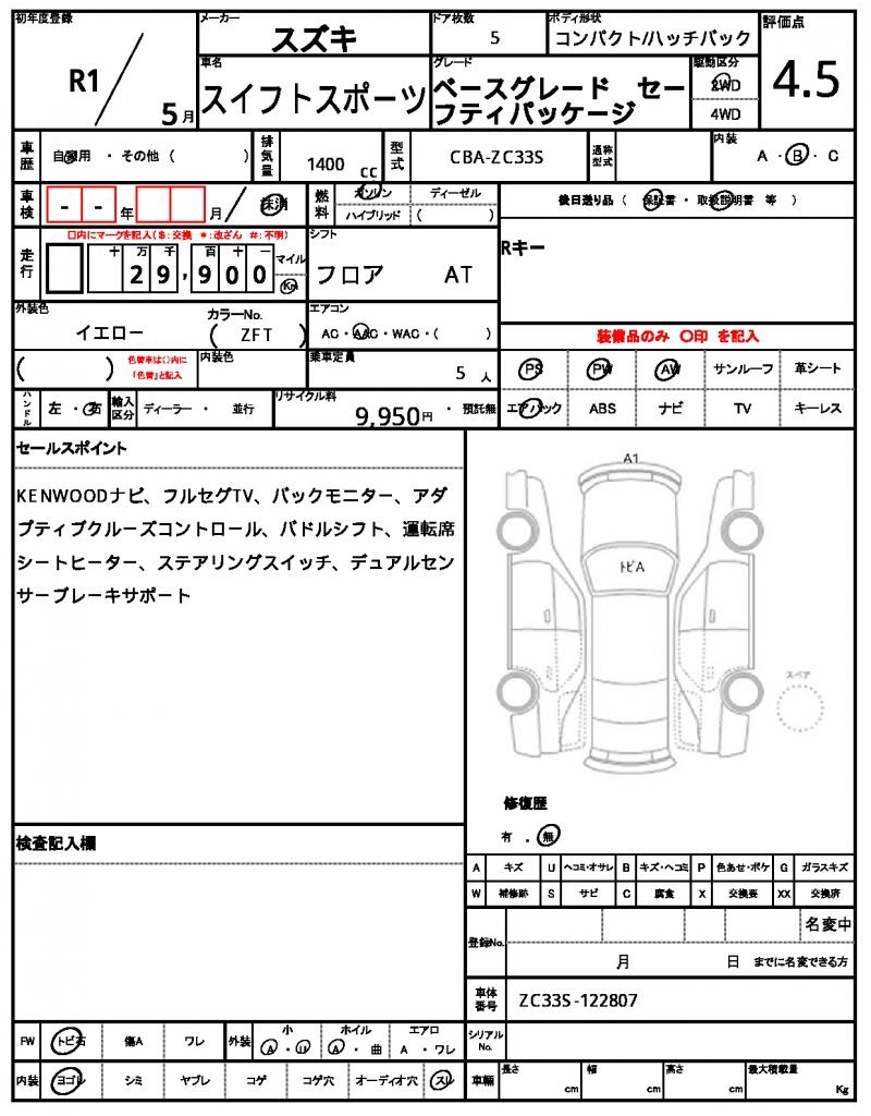 | VIN/Serial No. | ZC33S-122807 |