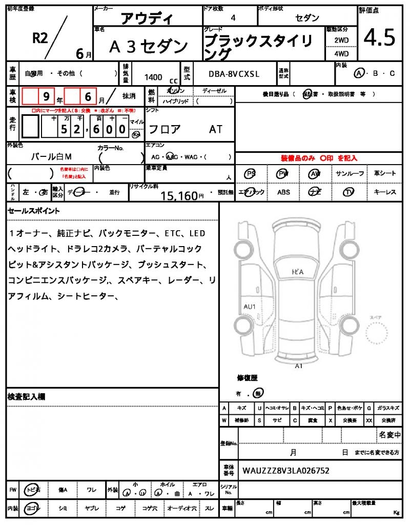 | VIN/Serial No. | WAUZZZ8V3LA026752 |