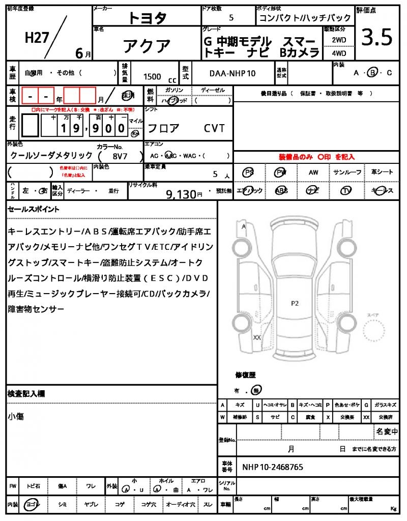 | VIN/Serial No. | NHP10-2468765 |