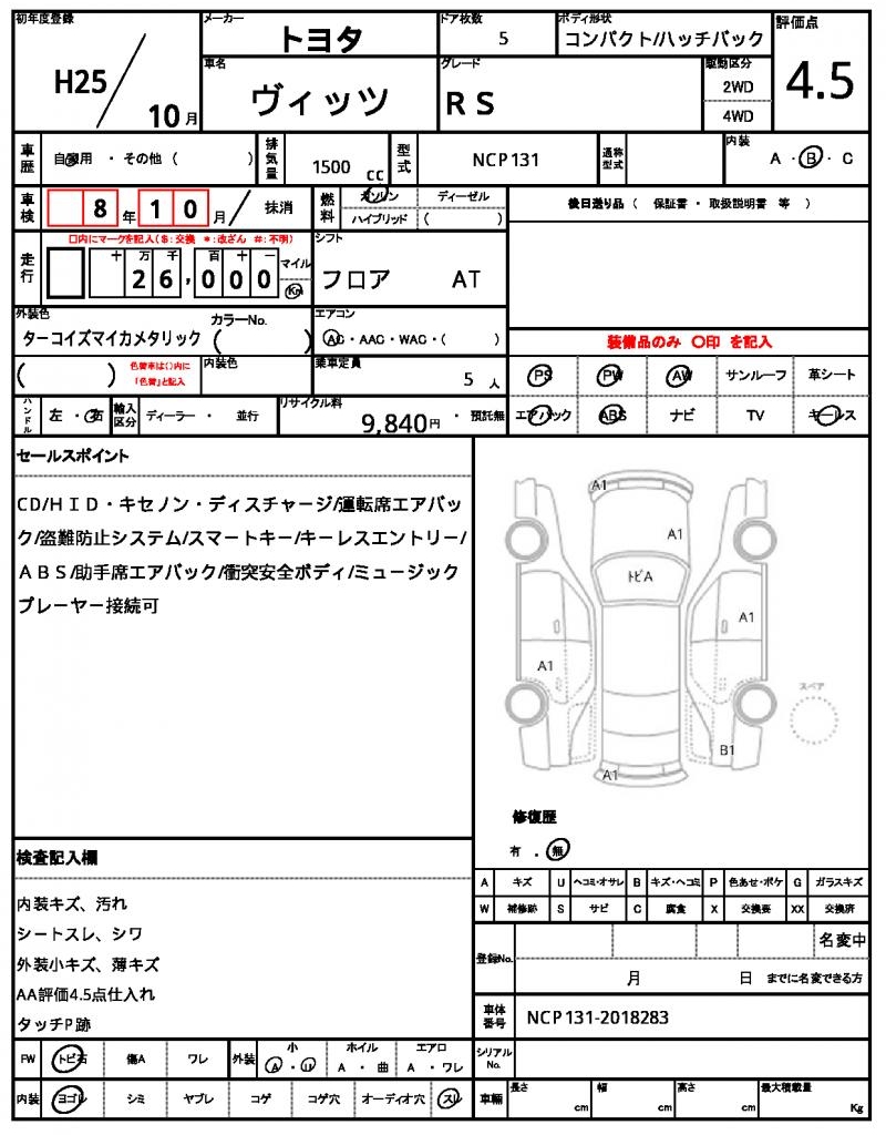 | VIN/Serial No. | NCP131-2018283 |