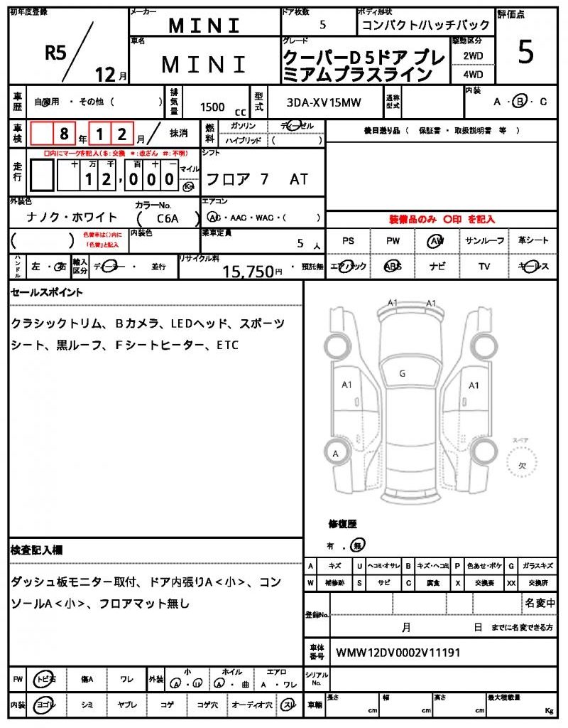 | VIN/Serial No. | WMW12DV0002V11191 |