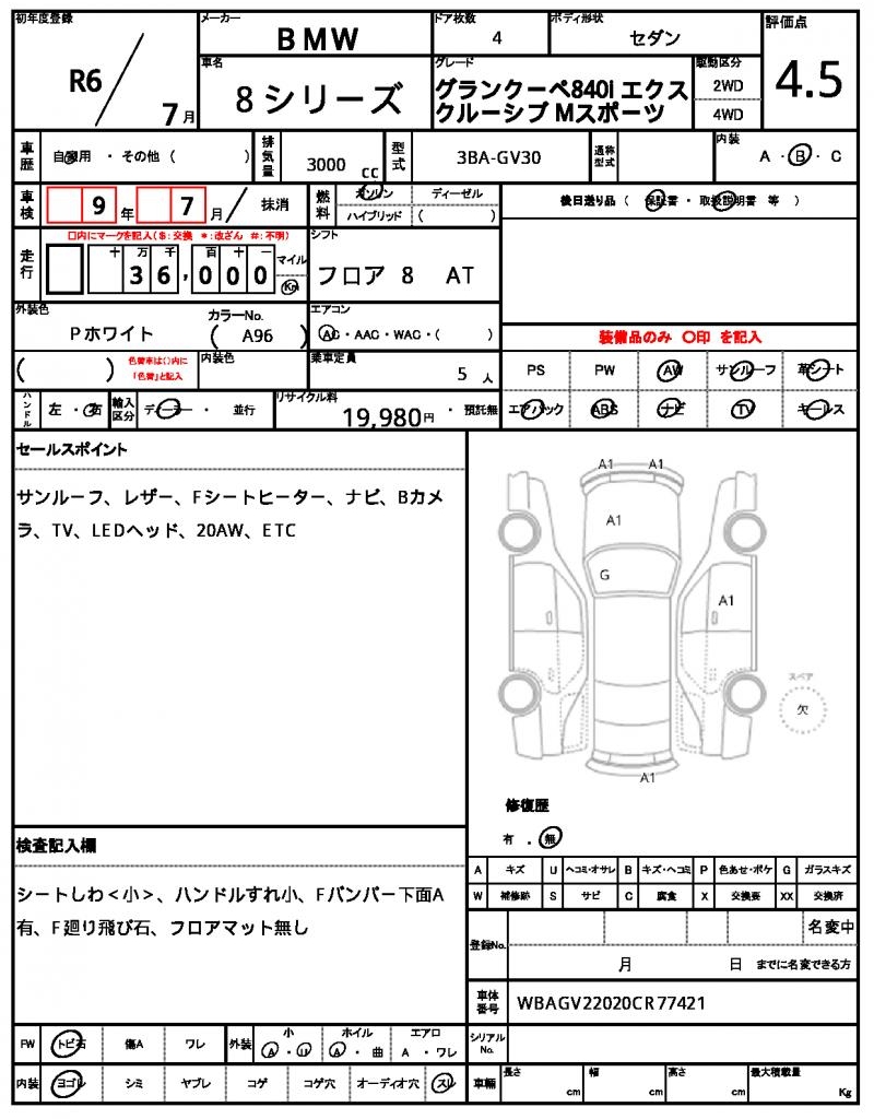 | VIN/Serial No. | WBAGV22020CR77421 |