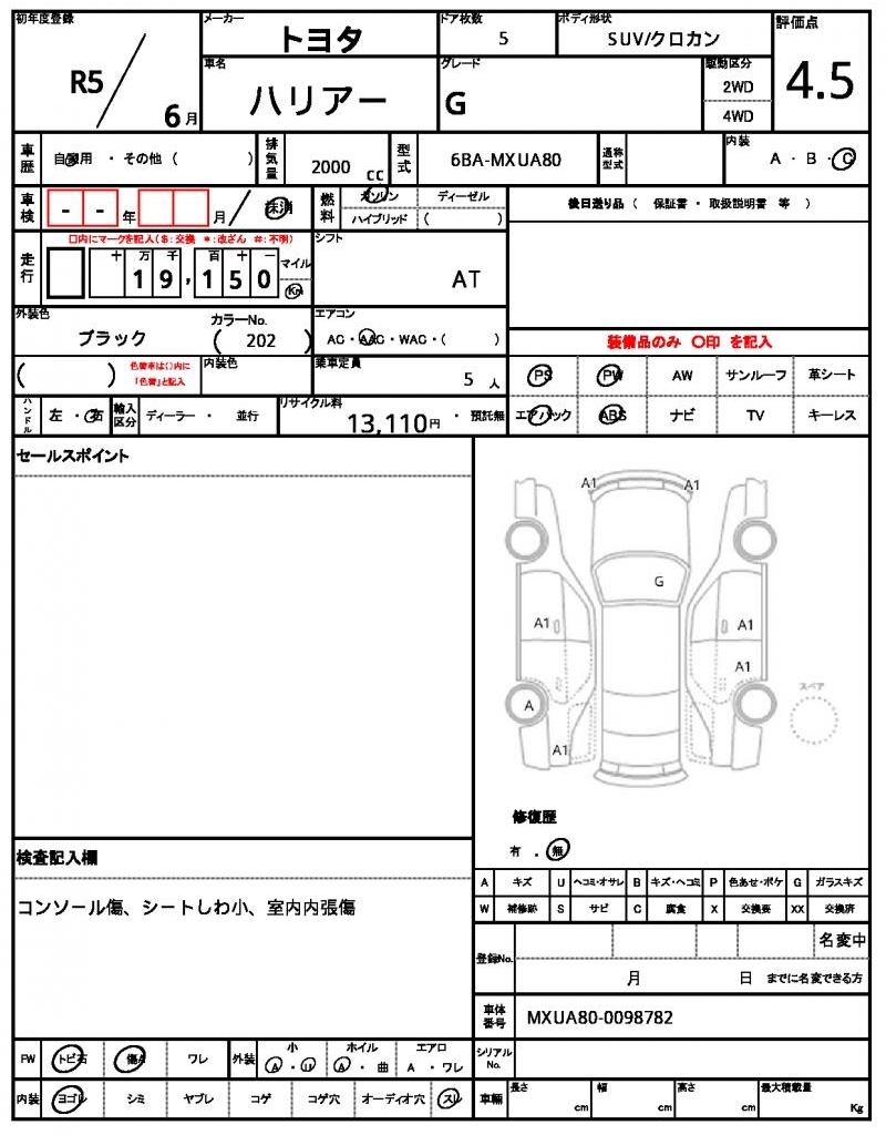 | VIN/Serial No. | MXUA80-0098782 |