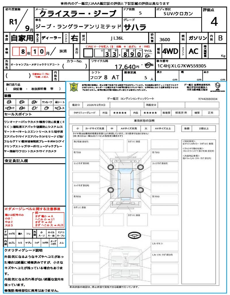 VIN/Serial No. 1C4HJXLG7KW559305