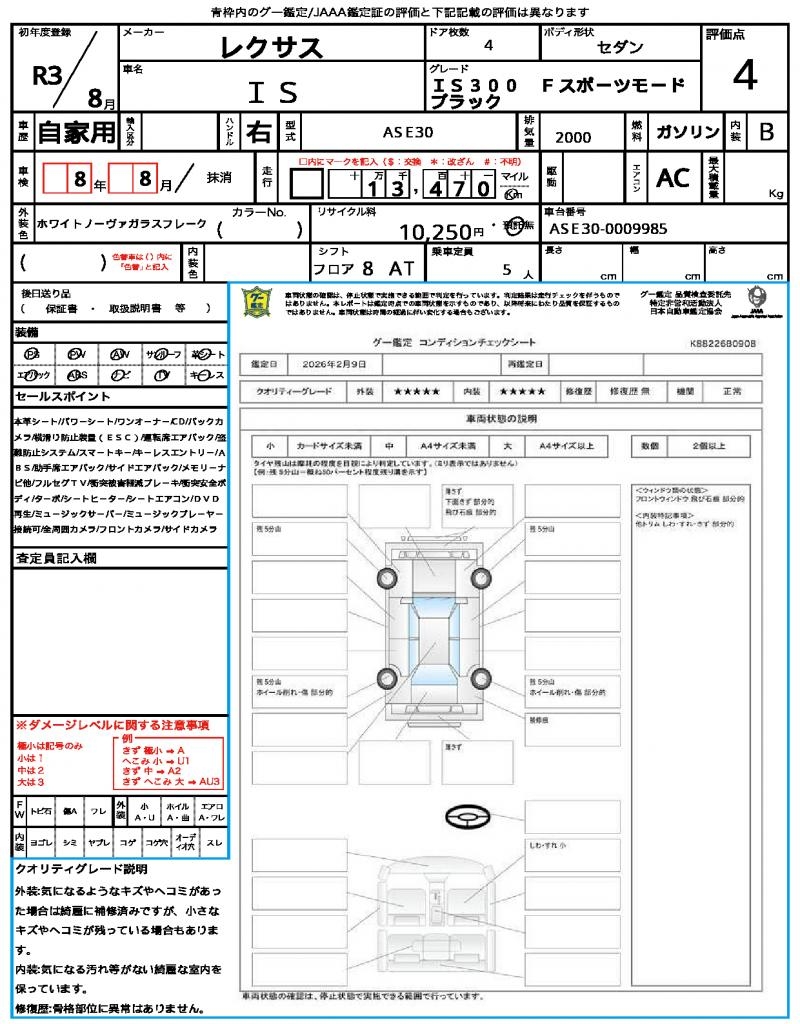| VIN/Serial No. | ASE30-0009985 |