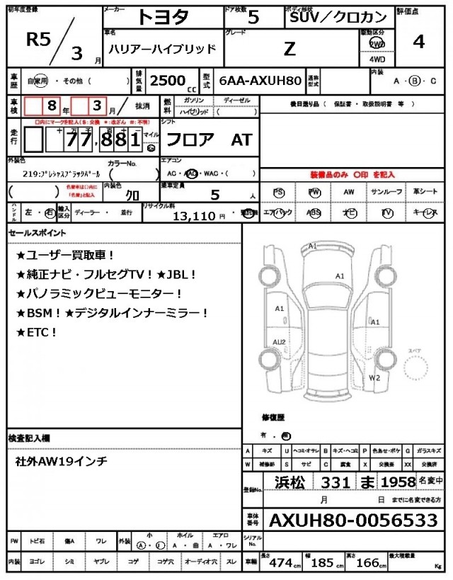 | VIN/Serial No. | AXUH80-0056533 |