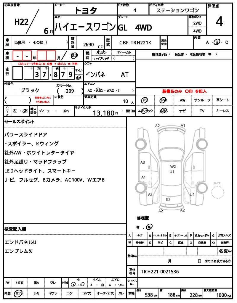 | VIN/Serial No. | TRH221-0021536 |