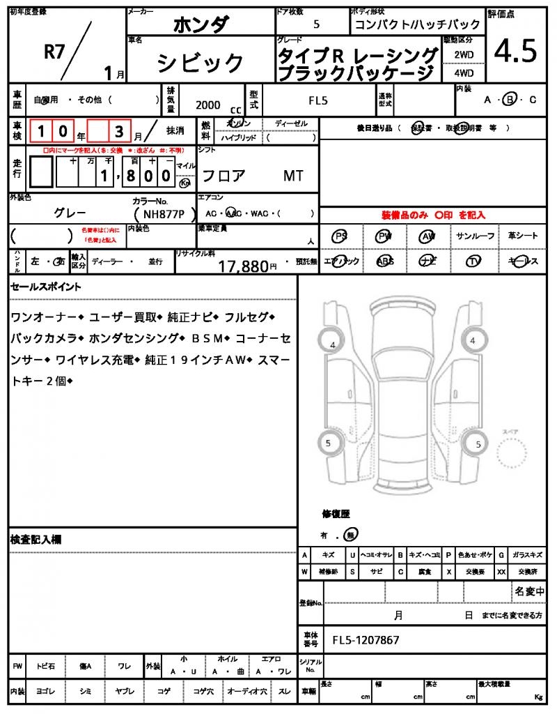 | VIN/Serial No. | FL5-1207867 |