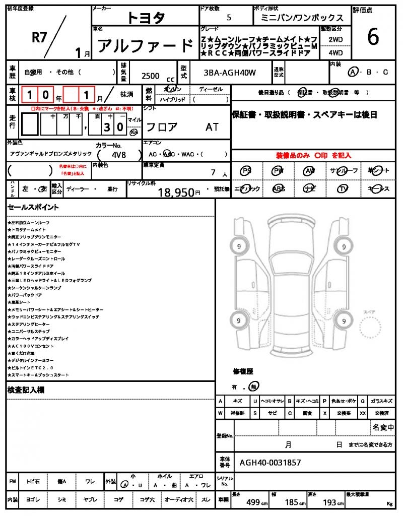 | VIN/Serial No. | AGH40-0031857 |