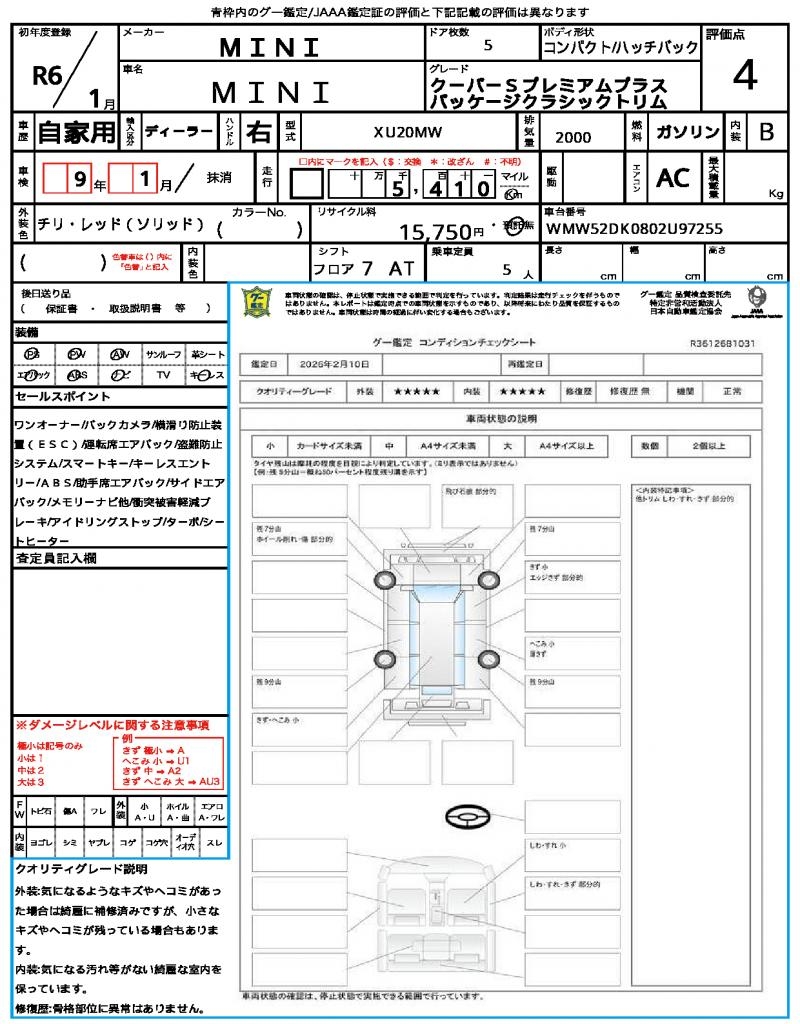 VIN/Serial No. WMW52DK0802U97255