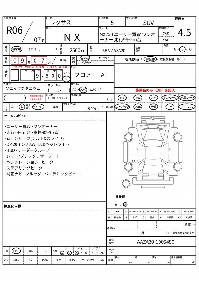 | VIN/Serial No. | AAZA20-1005480 |