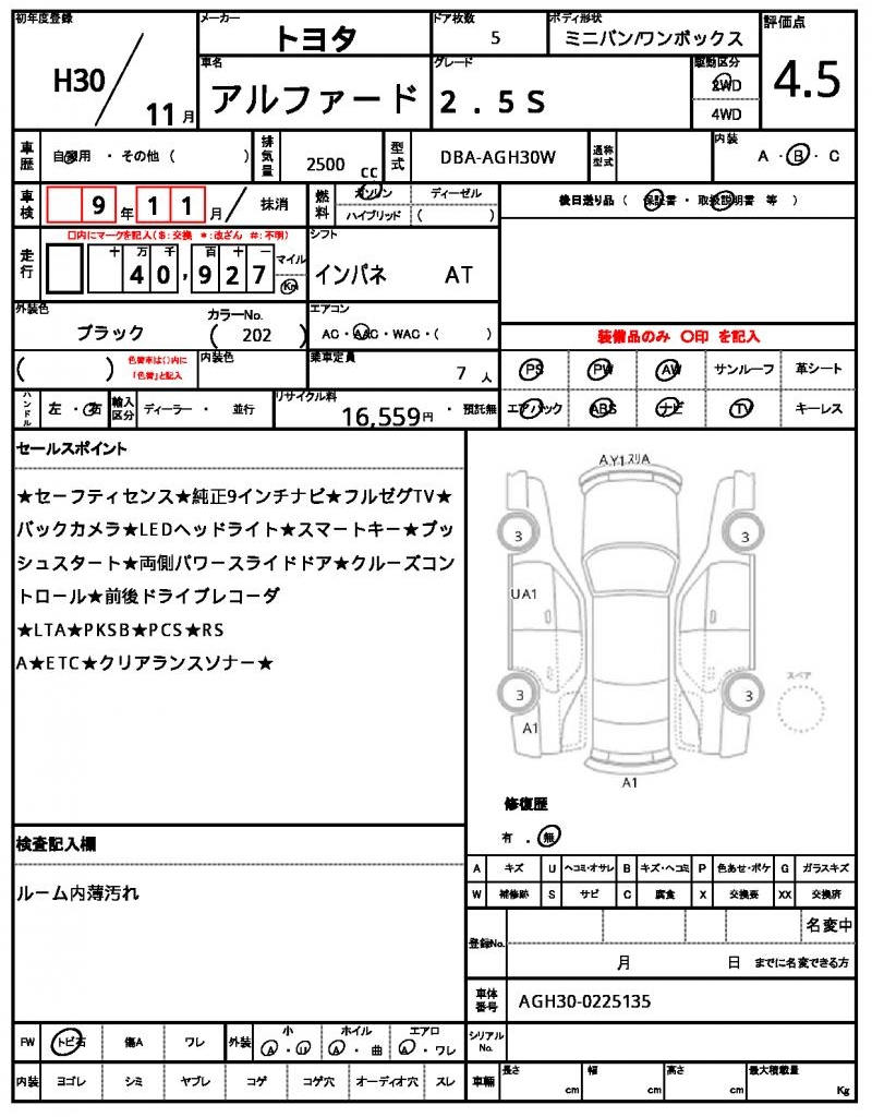 | VIN/Serial No. | AGH30-0225135 |