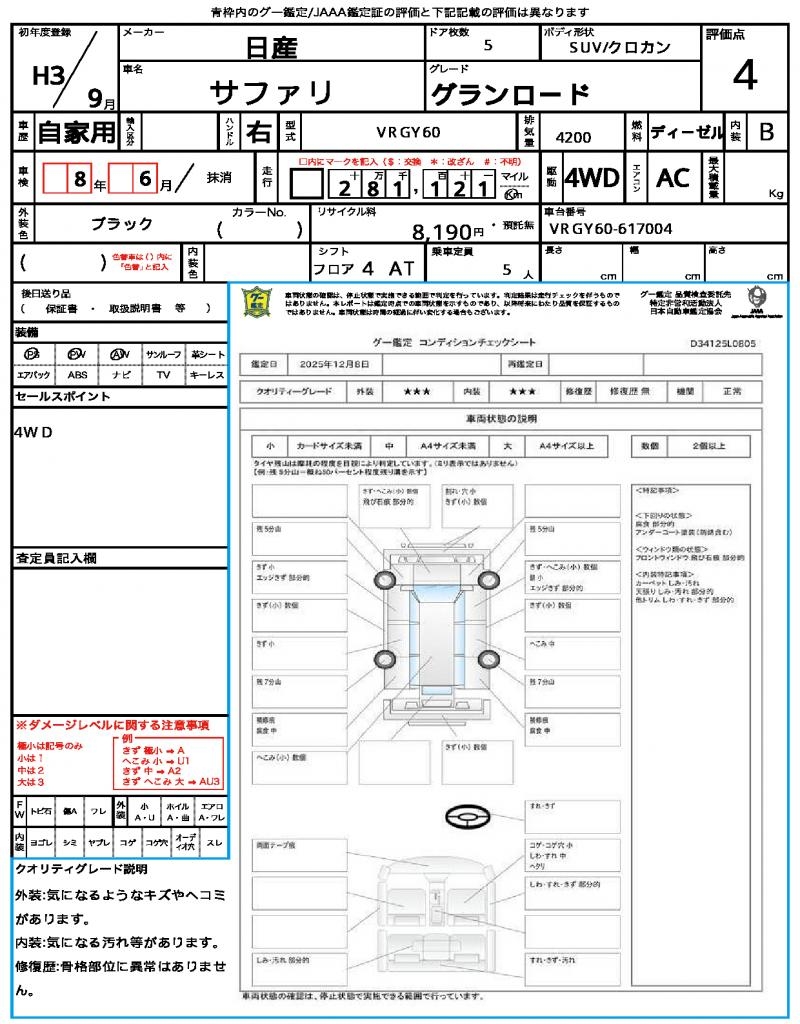 | VIN/Serial No. | VRGY60-617004 |