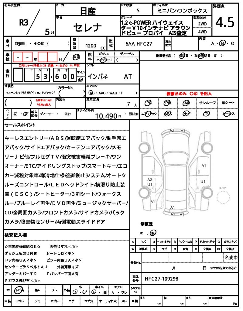 | VIN/Serial No. | HFC27-109298 |