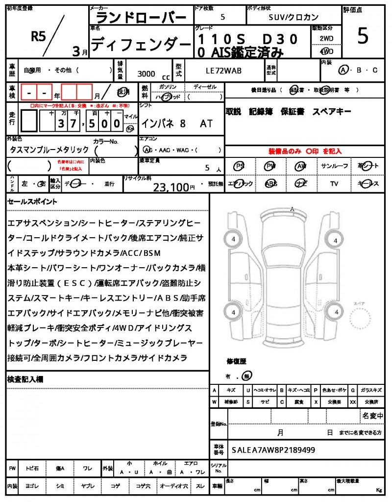 | VIN/Serial No. | SALEA7AW8P2189499 |