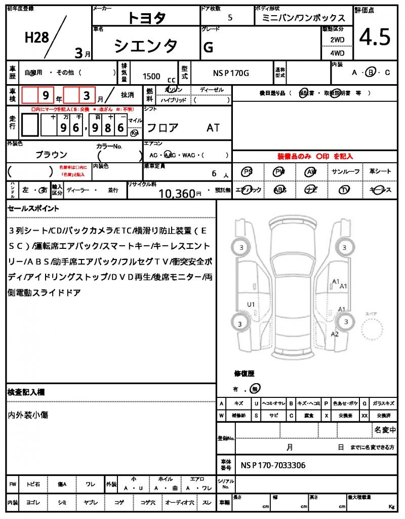 | VIN/Serial No. | NSP170-7033306 |