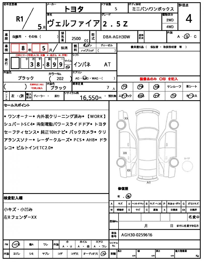 | VIN/Serial No. | AGH30-0259616 |