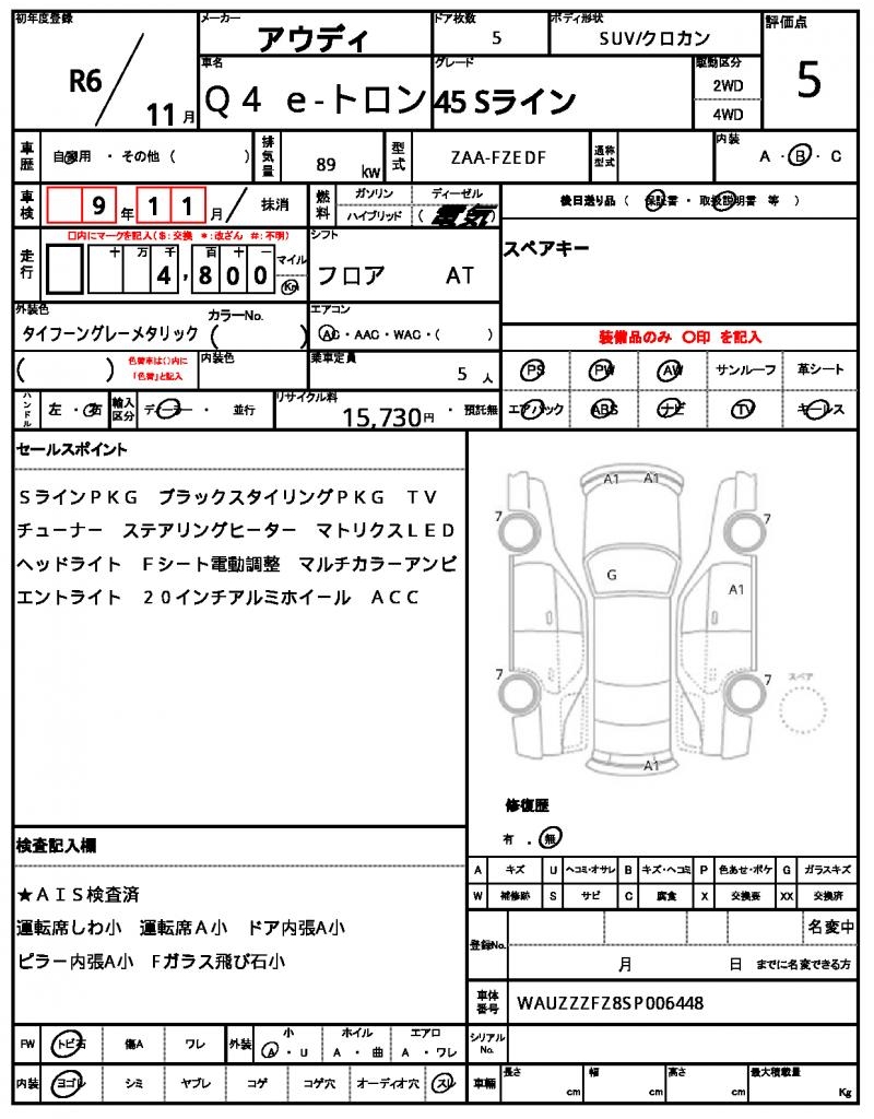 | VIN/Serial No. | WAUZZZFZ8SP006448 |