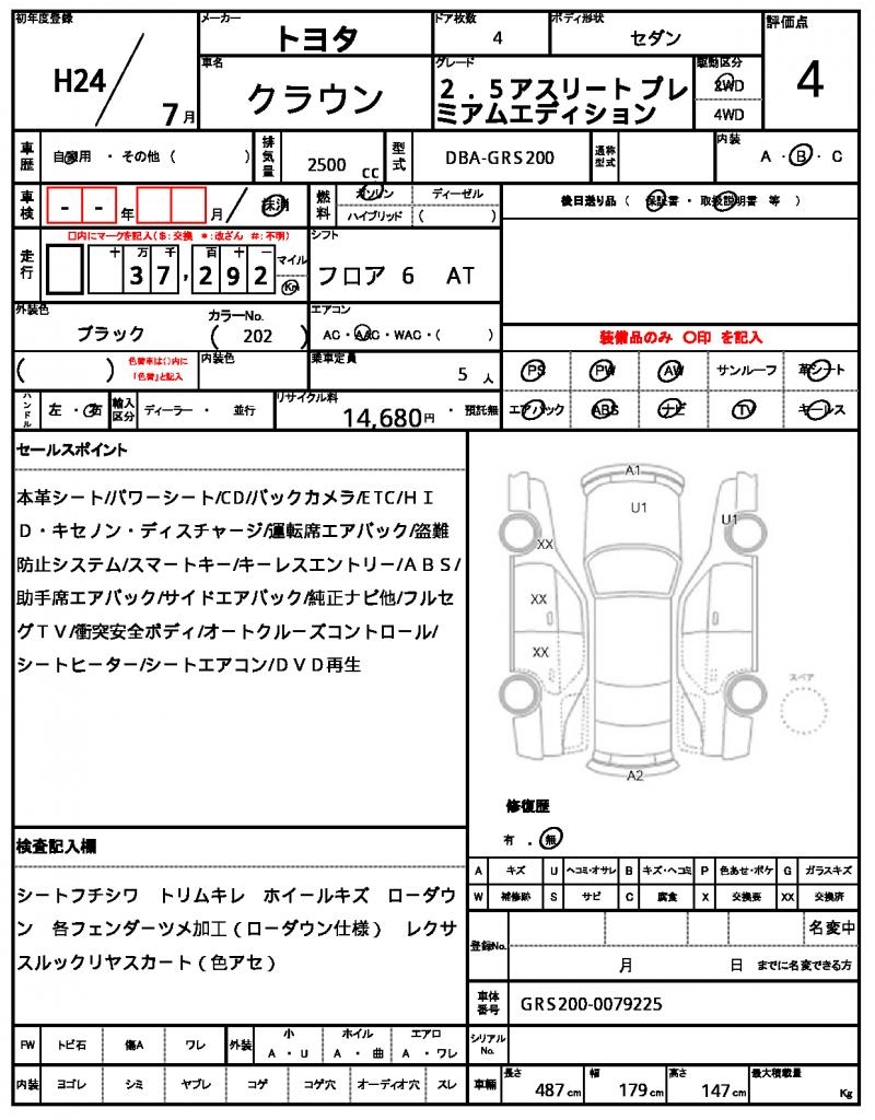 | VIN/Serial No. | GRS200-0079225 |