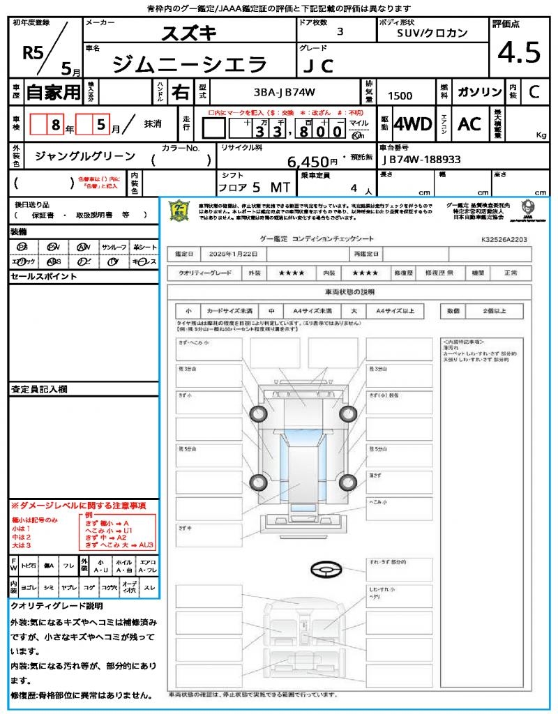 | VIN/Serial No. | JB74W-188933 |