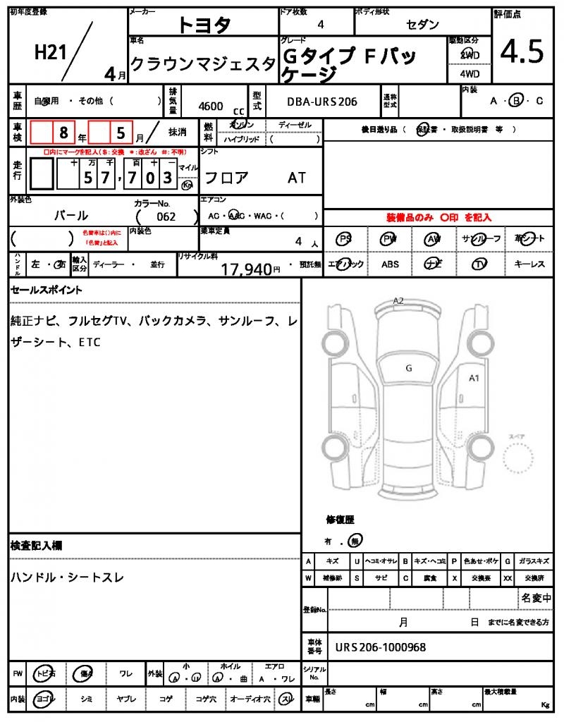 | VIN/Serial No. | URS206-1000968 |