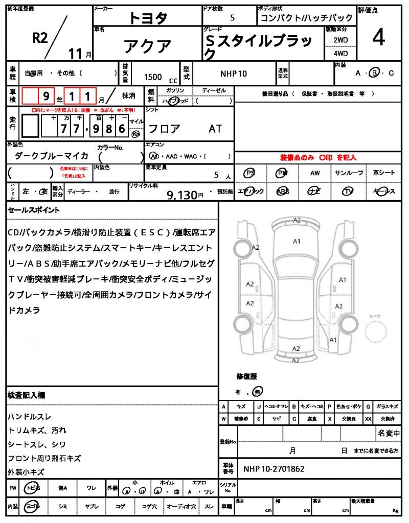 | VIN/Serial No. | NHP10-2701862 |
