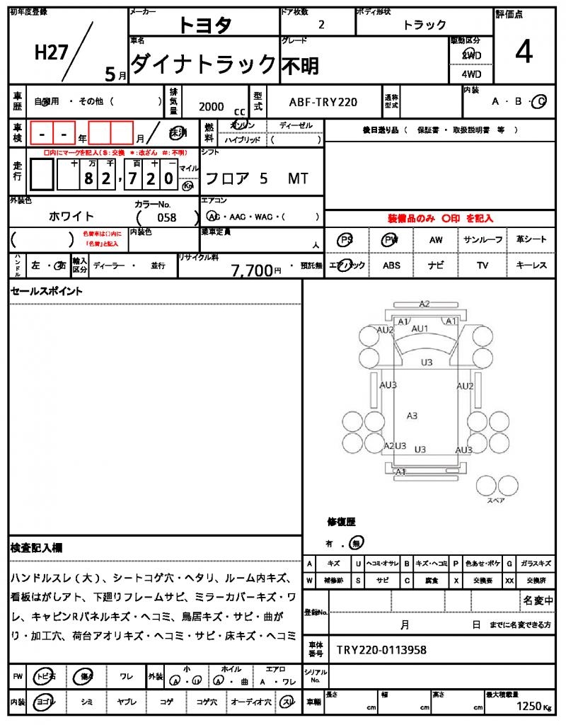 | VIN/Serial No. | TRY220-0113958 |