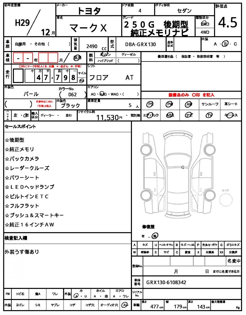 | VIN/Serial No. | GRX130-6108342 |