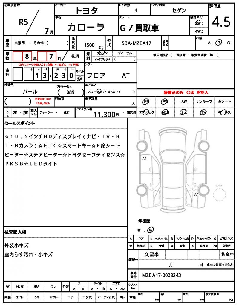 | VIN/Serial No. | MZEA17-0008243 |
