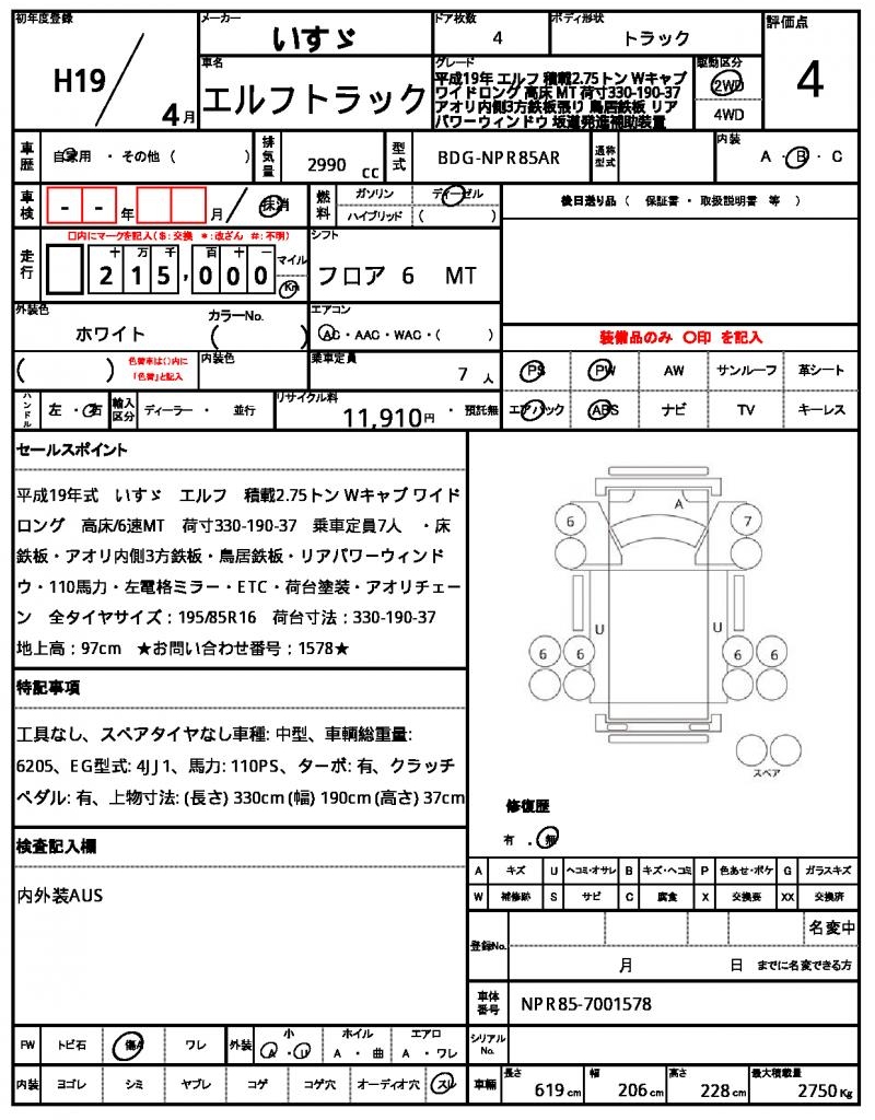 | VIN/Serial No. | NPR85-7001578 |