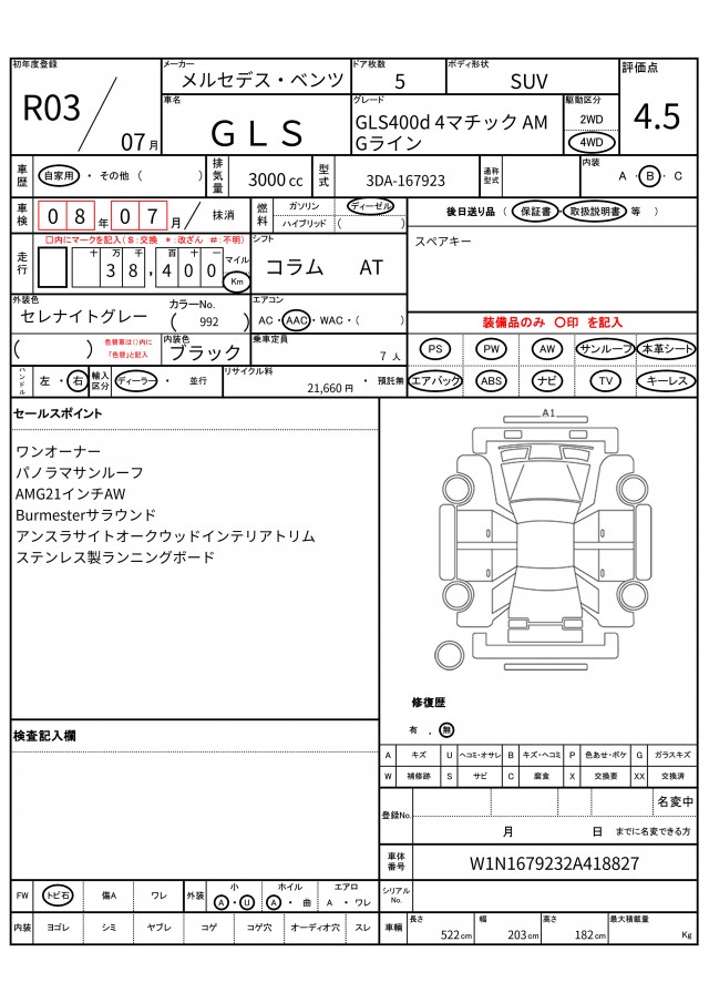 | VIN/Serial No. | W1N1679232A418827 |
