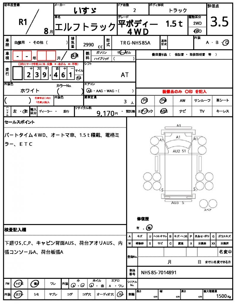| VIN/Serial No. | NHS85-7014891 |