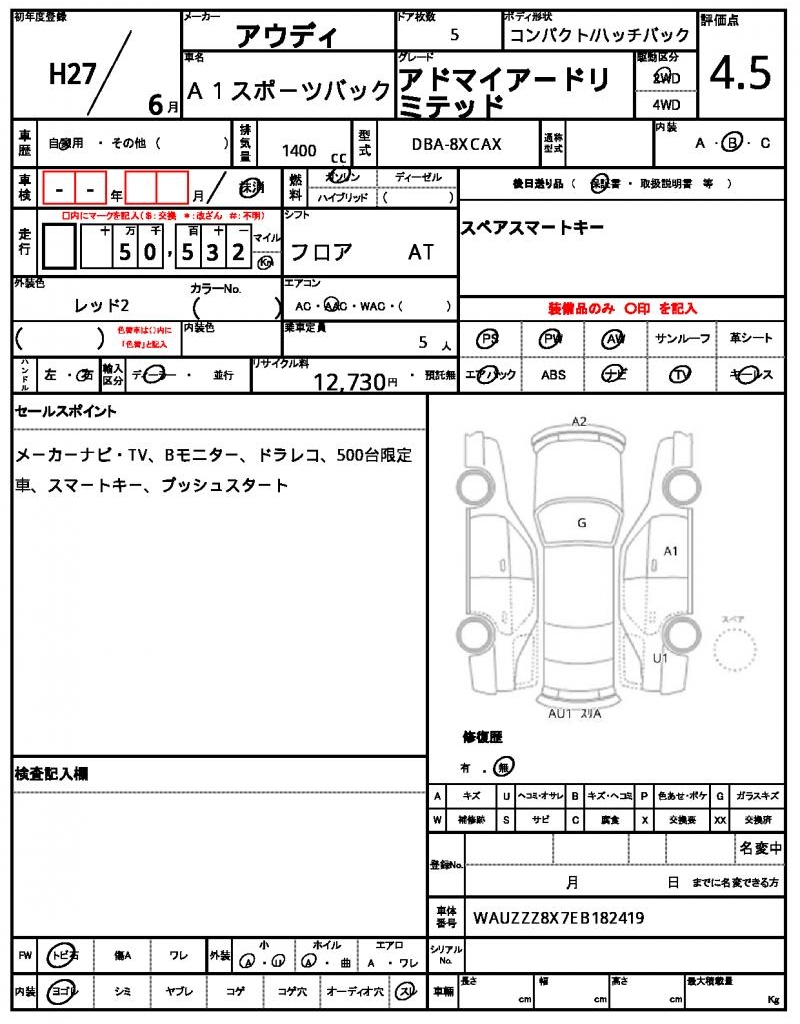 | VIN/Serial No. | WAUZZZ8X7EB182419 |