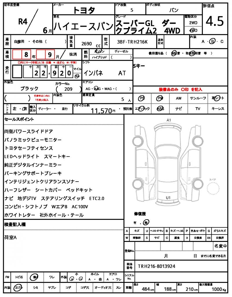 | VIN/Serial No. | TRH216-8013924 |