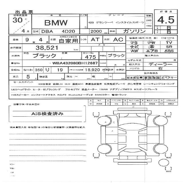 | VIN/Serial No. | WBA4H32080BH12687 |