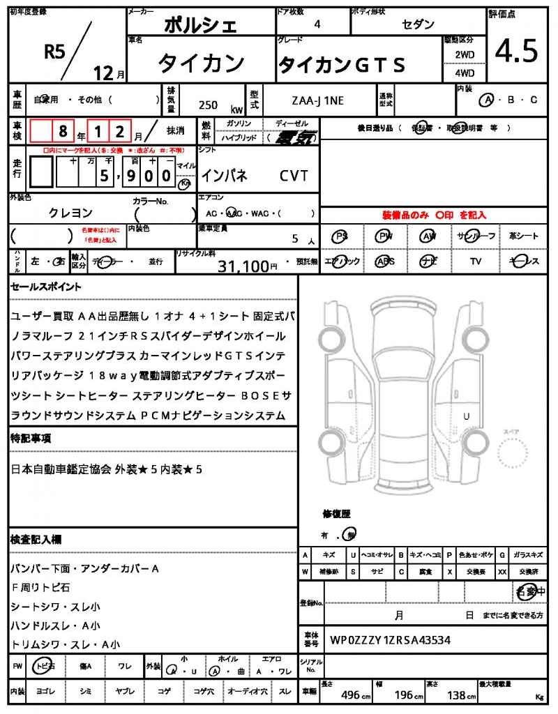 | VIN/Serial No. | WP0ZZZY1ZRSA43534 |