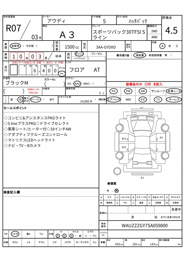 | VIN/Serial No. | WAUZZZGY7SA059800 |