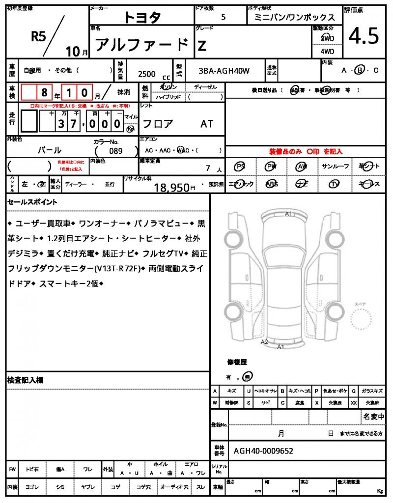| VIN/Serial No. | AGH40-0009652 |