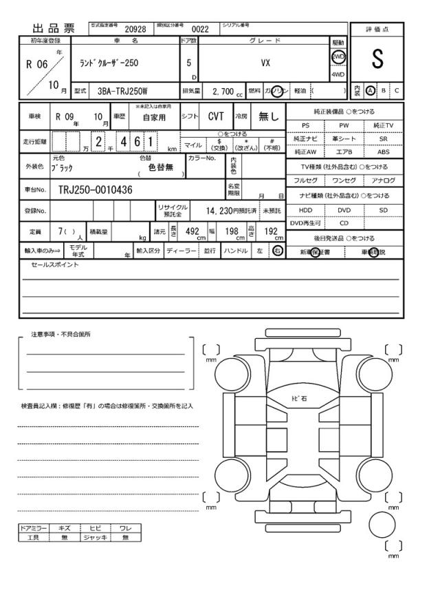 | VIN/Serial No. | TRJ250-0010436 |