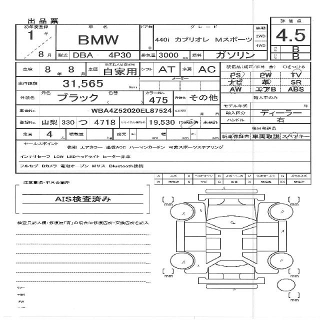 | VIN/Serial No. | WBA4Z52020EL87524 |