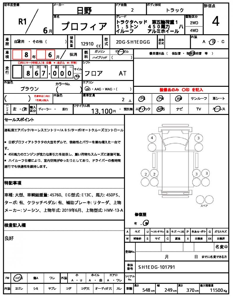 | Odometer | 867000km |
