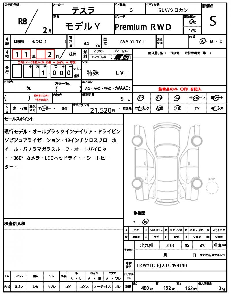 VIN/Serial No. LRWYHCFJXTC494140