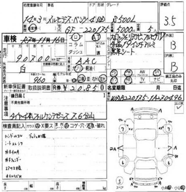 | VIN/Serial No. | WDB220175-1A270496 |