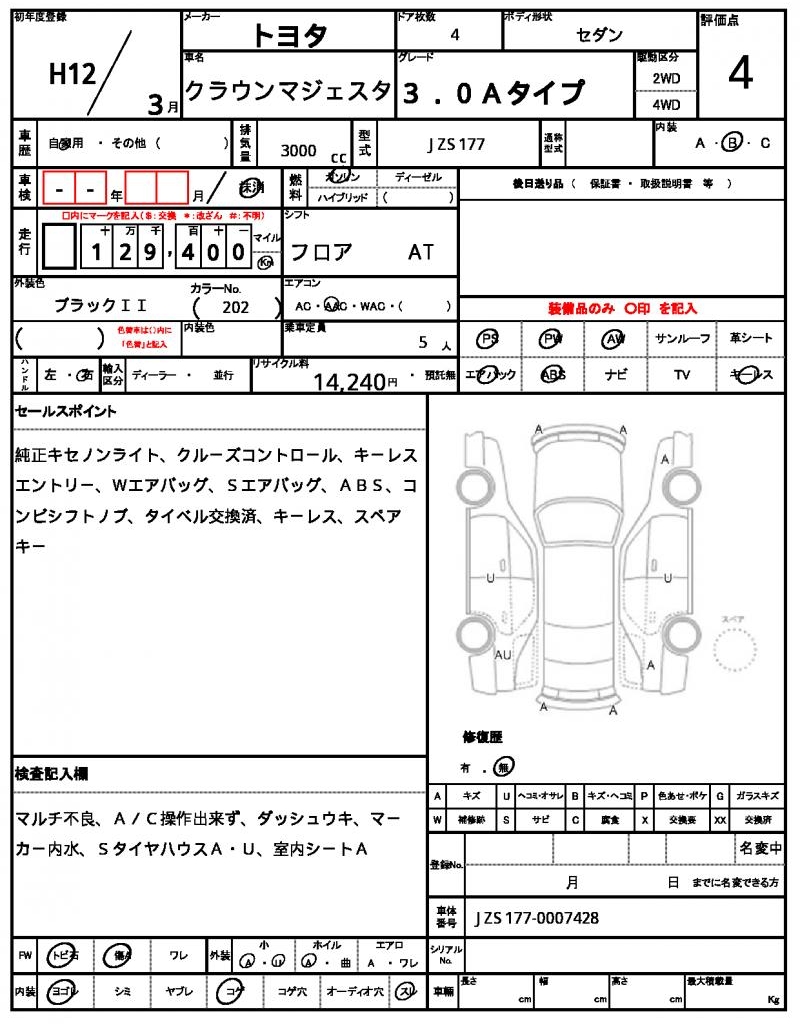 | VIN/Serial No. | JZS177-0007428 |